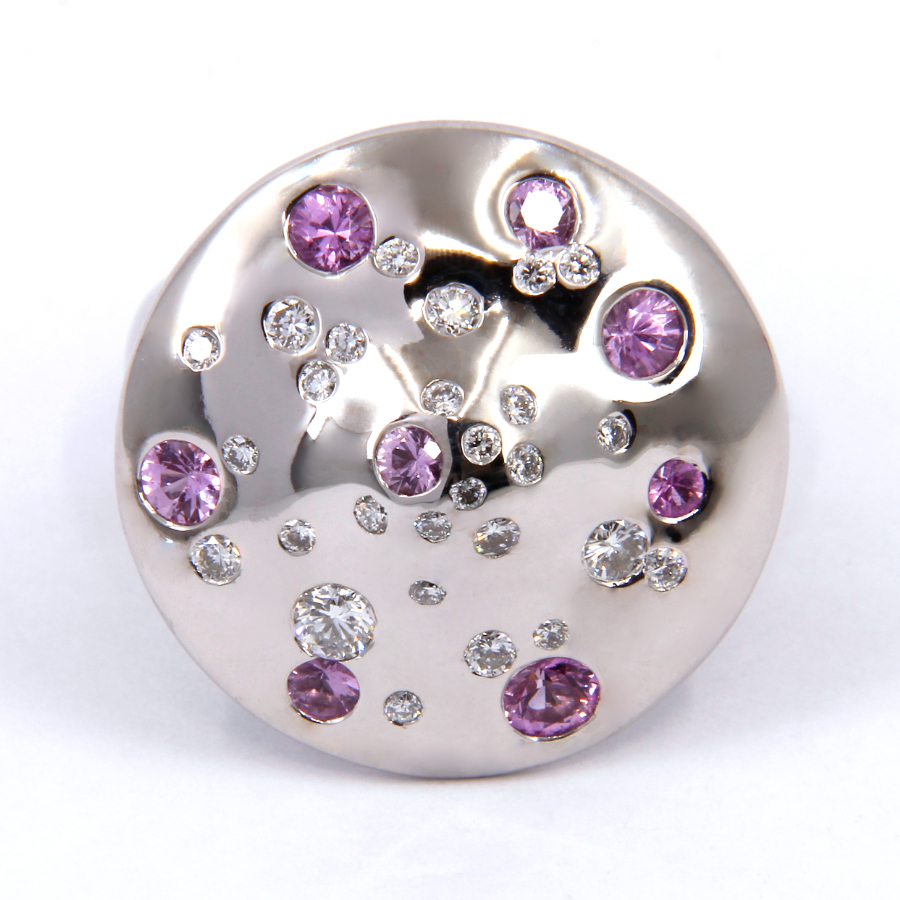 Bague Champignon en or blanc, diamants et saphirs roses3.240 €